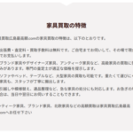 家具買取広島最高額.comの家具買取の特徴は、以下のとおりです。