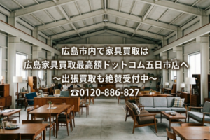家具買取広島最高額.comでは、アンティーク・デザイナーズ・北欧・ブランド家具など幅広く買取対応。査定無料・出張買取も可能です。処分のご相談も承ります。